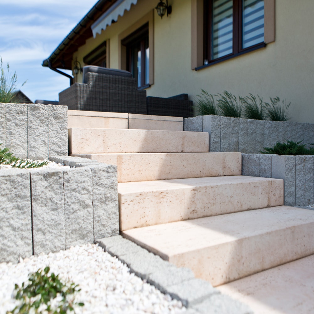 Piękne, emanujące klasyczną elegancją bloki schodowe Kavero to uzupełnienie kolekcji płyt tarasowych o tej samej nazwie. Nieco porowata powierzchnia, podkreślana nieregularnymi wklęsłościami nawiązuje do naturalnej skały trawertynu. Możemy mieć zatem pewność, że wszystkie kompozycje z udziałem bloków schodowych Kavero cechować będzie naturalny, dostojny charakter. Subtelne barwy poszczególnych elementów, dopasowane do kolorystyki płyt, sprawią, że zbudowane z nich schody doskonale sprawdzą się w strefie wejściowe okazałych, stylowych rezydencji, ale również prowadząc z ogrodu na taras, towarzyszący minimalistycznej bryle budynku.