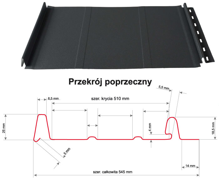 Panel dachowy RS-500 to ukłon w stronę klasycznych kształtów pokryć dachowych na rąbek stojący. W połączeniu z nowoczesnymi rozwiązaniami, takimi jak zamek zatrzaskowy „click” i dodatkowe dwa tłoczenia wzmacniające RS-500 zapewnił sobie uznanie fachowców, ekspertów, architektów, jak i inwestorów, którzy coraz chętniej decydują się na ten rodzaj pokrycia.