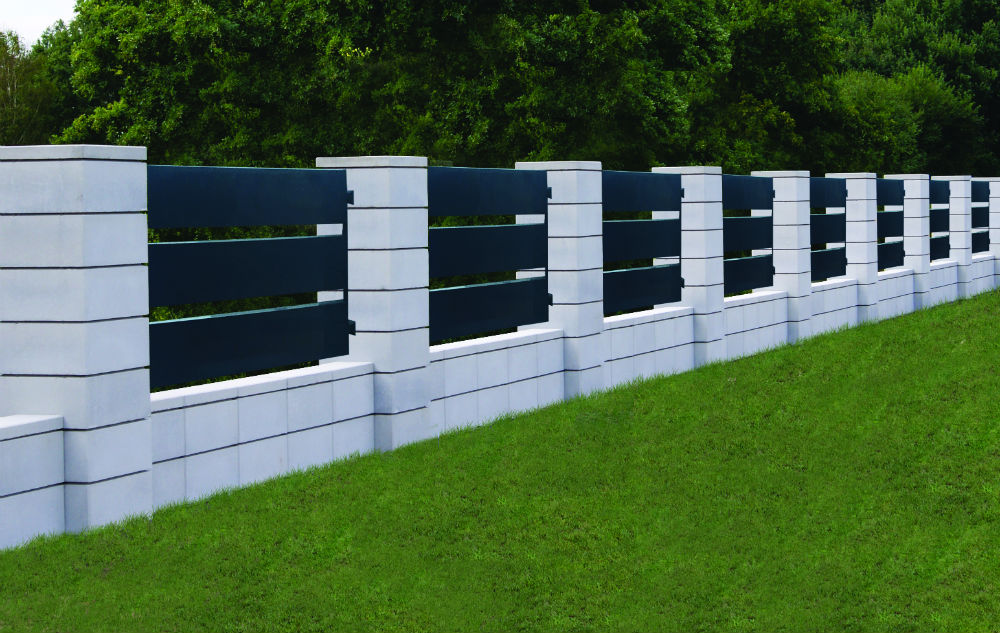 Nowoczesny system ogrodzeniowy, który charakteryzuje się prostymi kształtami.