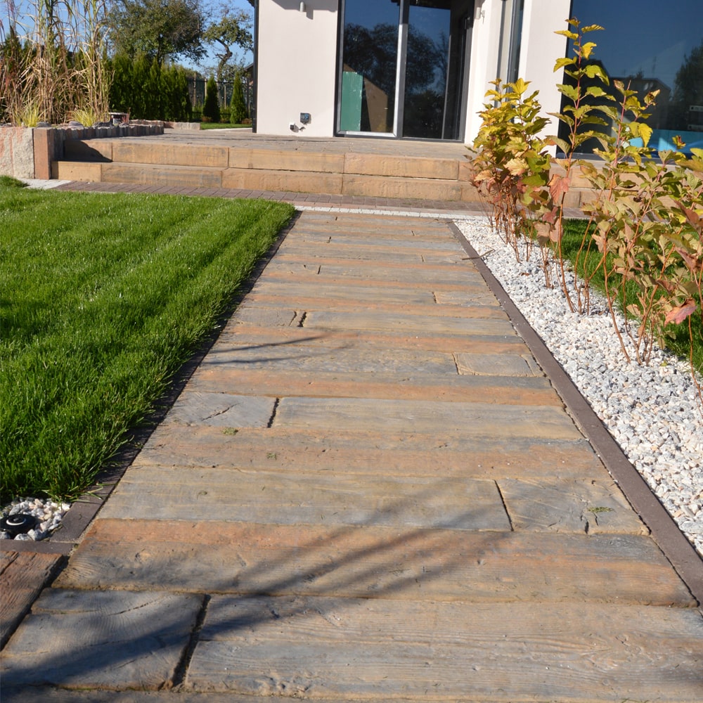 Drewno Ogrodowe Realit to urokliwy system płyt-desek, kopyt oraz krążków z wyschniętego drewna o wyrazistych słojach. Trudno uwierzyć, że wykonane są z betonu. Materiał ten nieporównywalnie wydłuża czas użytkowania w stosunku do drewna naturalnego. Płyty Drewno Ogrodowe wykorzystywane są do placyków, ścieżek ogrodowych, obrzegowania rabat kwiatowych oraz stopni schodowych. Wspaniale komponują się z zielenią oraz żwirem otoczaków. Uzupełnieniem systemu są minipalisadki Akacja.